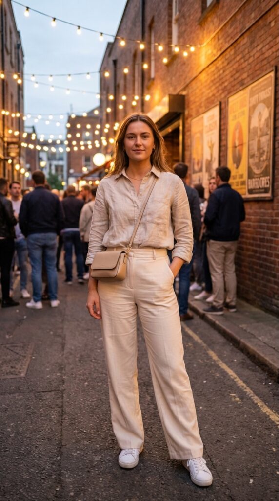 This outfit is ideal for travelers who love a minimalist aesthetic with a touch of elegance and simplicity.