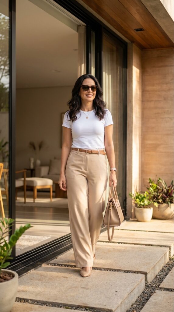 6. White Tee + Wide-Leg Pants