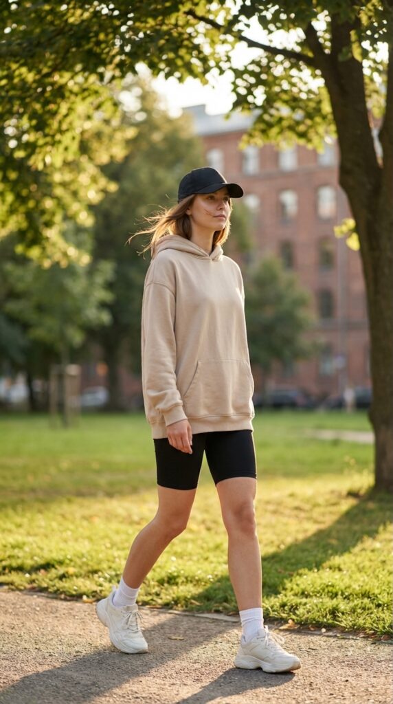 1. Oversized Hoodie & Biker Shorts