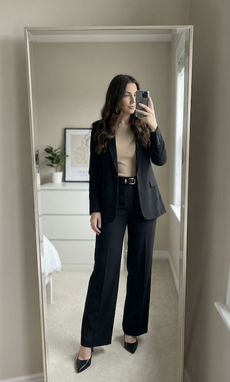 For understated sophistication, this outfit is extremely fitting for professional events, meetings and workdays.